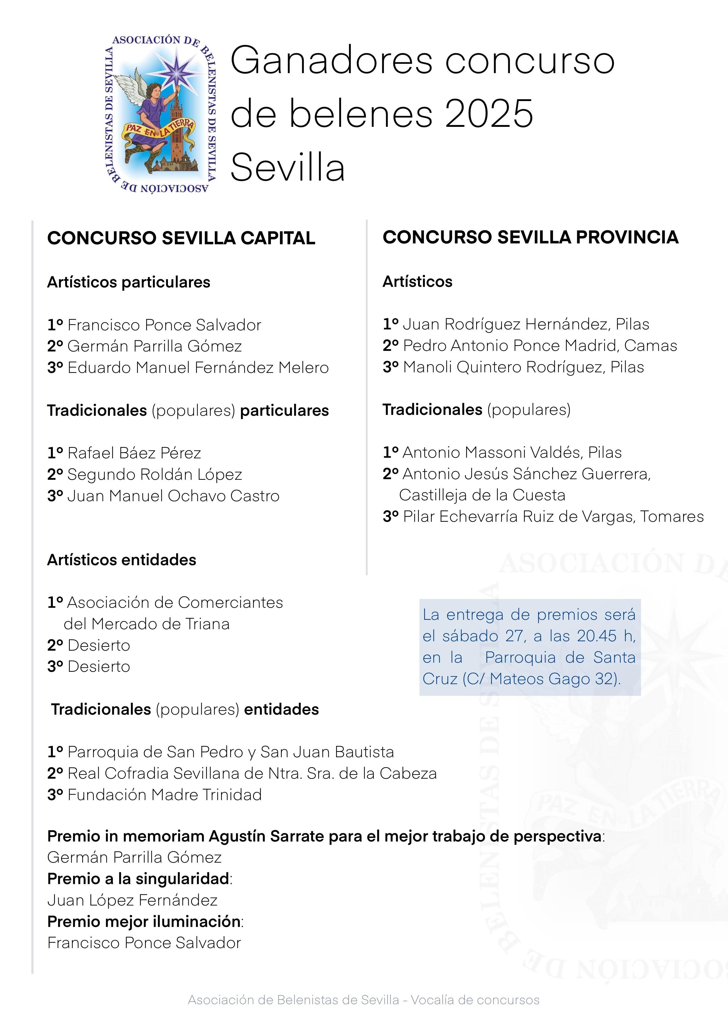 RESULTADOS DEL CONCURSO DE BELENES DE SEVILLA Y PROVINCIA NAVIDAD 2025