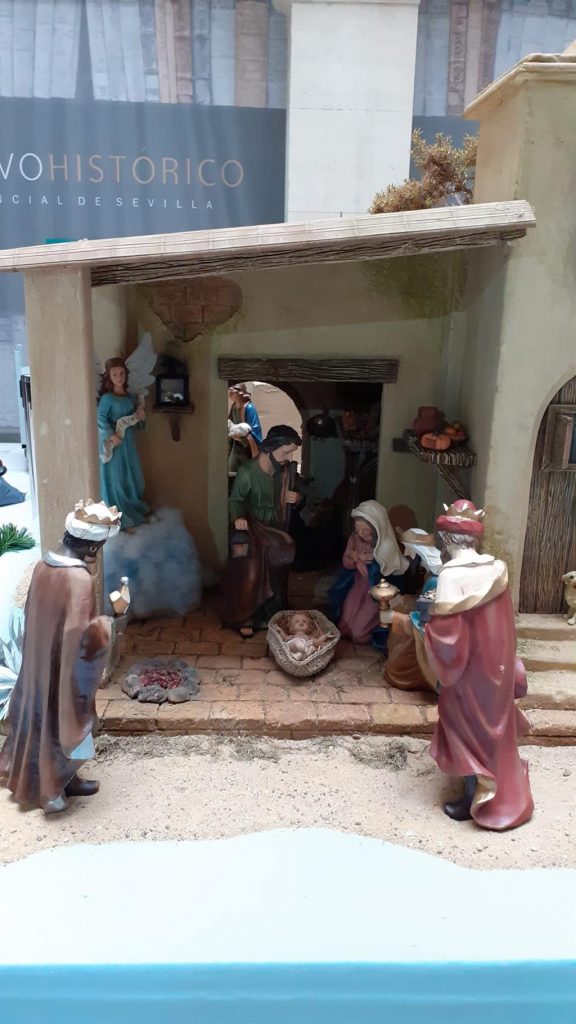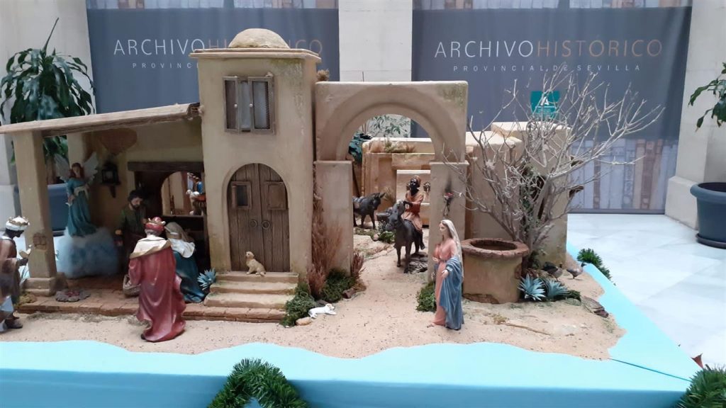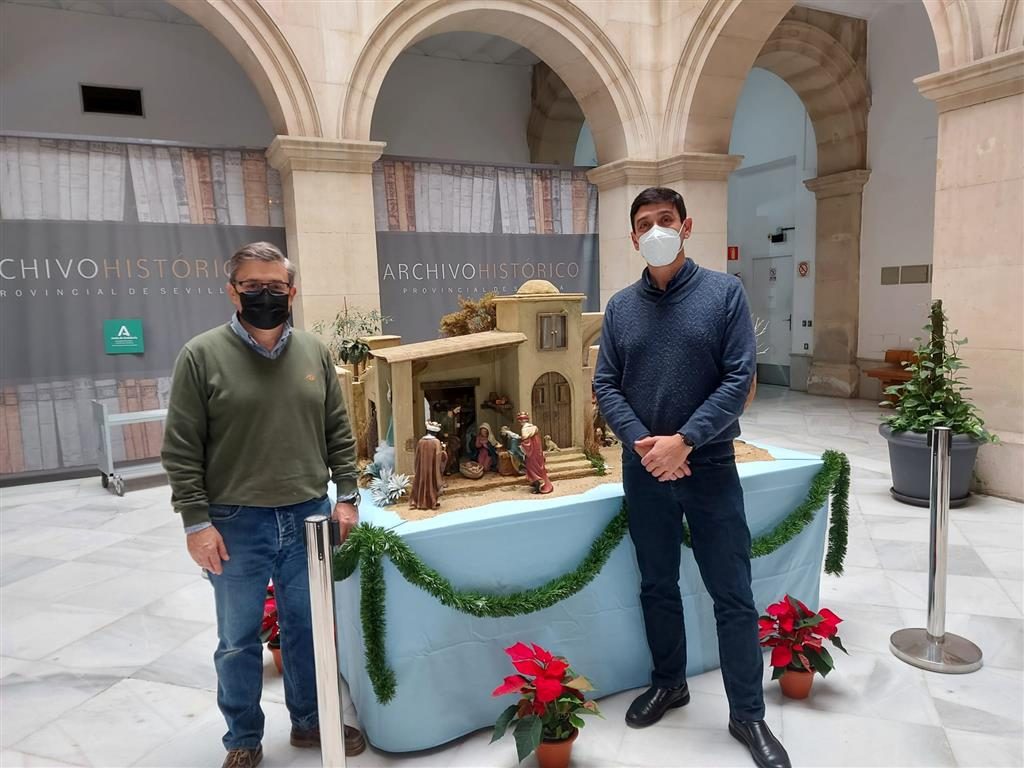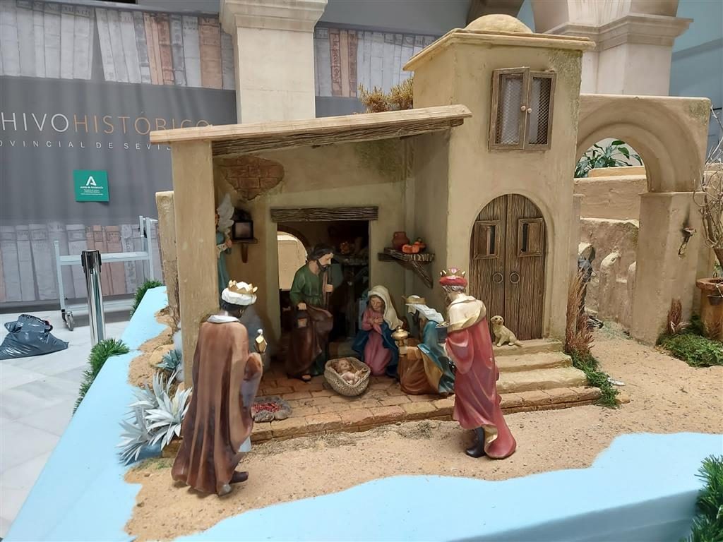 El lunes 6 de diciembre, en pleno puente, se inauguraba el nacimiento realizado para la sede del Archivo Histórico Provincial de Sevilla, sito en la calle Almirante Apodaca. Su director, D. Braulio Vázquez estuvo junto a nuestro presidente, D. Antonio Arias, en la apertura destacando el buen hacer belenista en el montaje de este belén. Es visitable en días laborables por la mañana.