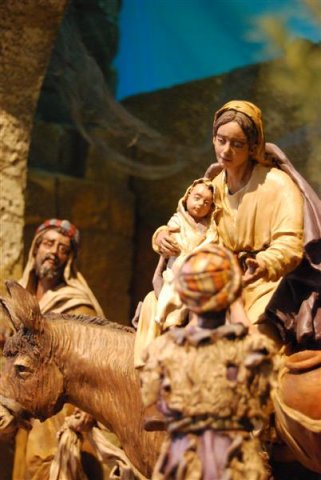 Hubo muchos amigos belenistas en el acto, compartiendo todos la maravillosa escena que teniamos ante nuestros ojos. Un descanso en la huida, que nunca se irá, se quedará para recordarnos que estuvo en nuestra sede para siempre, porque todo el que se acercaba se quedaba sin palabras para definirlas. Como ya nos tiene acostumbrados Manuel ha plasmado sentimientos y pensamientos que el dice que hubiese tenido si se encontrase en aquella situación.